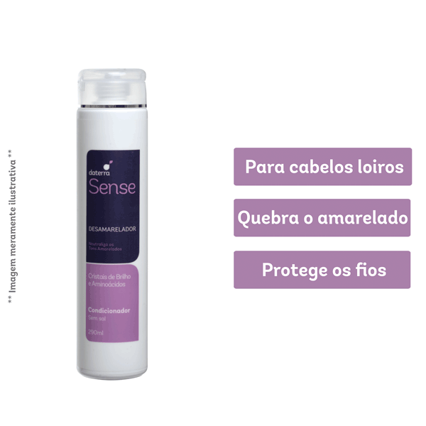 O Condicionador Desamarelador da linha Sense ajuda a quebrar a cor amarela presente nos cabelos loiros, grisalhos e brancos, causada pela ação do tempo, coloração, nicotina, poluição e raios UV. Possui efeito gradual e progressivo.