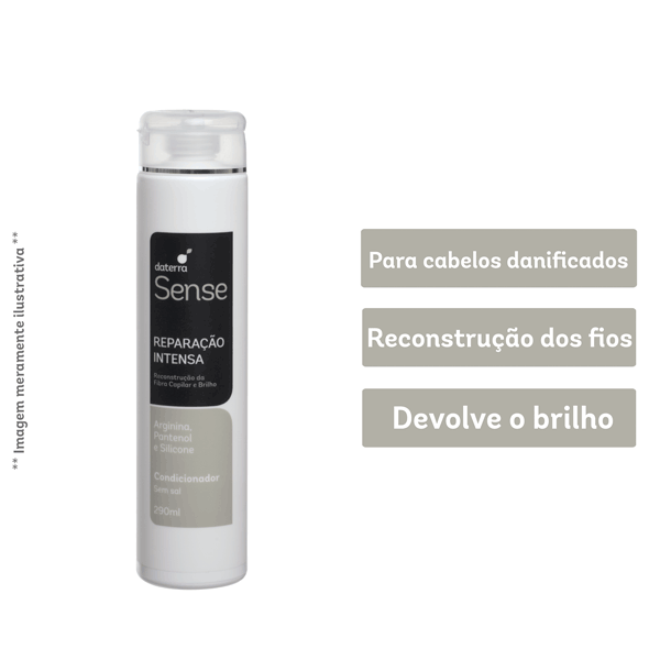 O Condicionador Daterra Sense Reparação Intensa possui sua formulação exclusiva com Arginina, Pantenol e Silicone que reestrutura a fibra capilar, devolvendo suas propriedades de brilho, sedosidade e resistência à quebra, resultando em cabelos hidratados, saudáveis e fortalecidos.