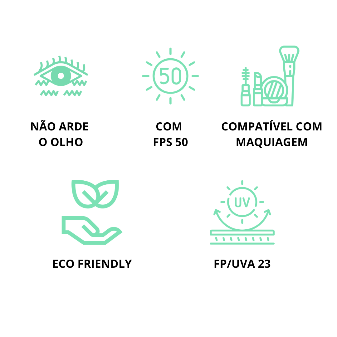 - Possui alta proteção solar com FPS 50 e FP/UVA 23.
