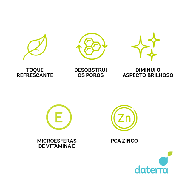 O PCA de Zinco atua diminuindo a produção de sebo pelas glândulas sebáceas e reduzindo o excesso de brilho, característico da pele oleosa, diminuindo também a formação de cravos e espinhas. As microesferas de vitamina E têm ação antioxidante e hidratante.
