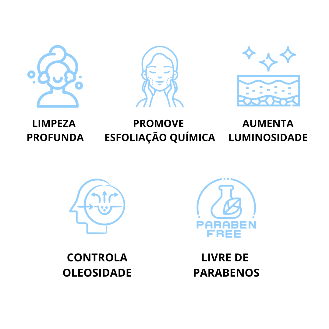 - Esfoliação química eficaz que facilita a absorção de outros produtos.
