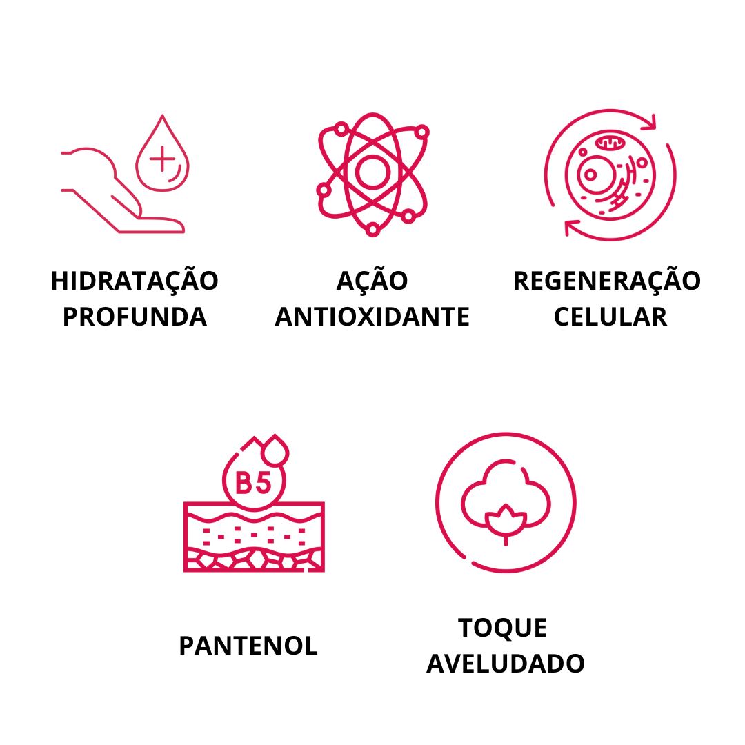Em conjunto, esses ativos formam uma camada protetora que ajuda na regeneração dos lábios e na estimulação da produção de colágeno. Sua formulação conta com ativos naturais e com ação antioxidante.