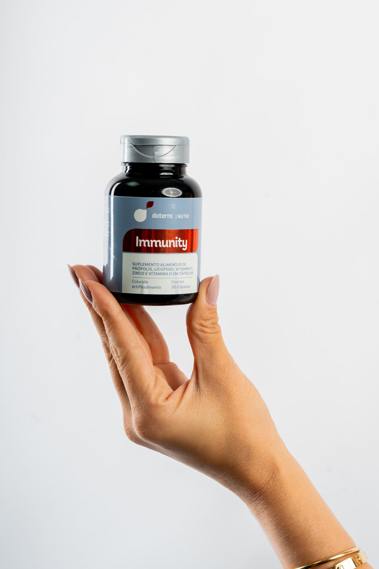 O suplemento Immunity é composto por Própolis, Licopeno, Vitamina C, Zinco e Vitamina D. Combinados, esses componentes fortalecem o sistema imunológico, essencial para enfrentar os desafios diários de saúde e promover uma resposta imunológica equilibrada e eficiente.