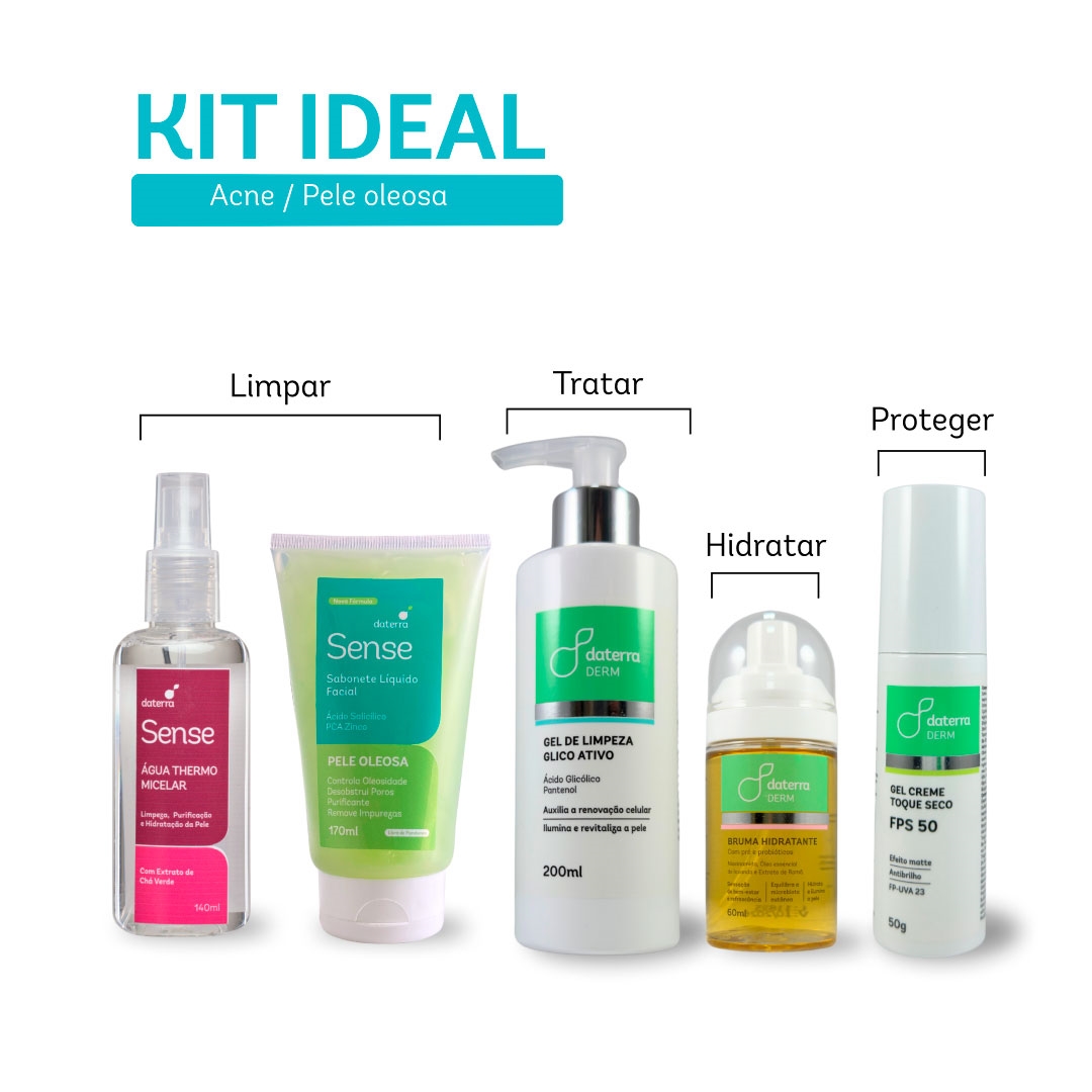 O kit ideal para auxliar no tratamento de acnes em peles oleosas é composto por: