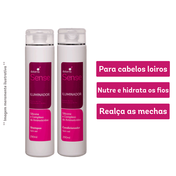 Desenvolvidos para cabelos loiros, com luzes ou reflexos, os produtos Daterra Sense Iluminador promovem brilho e manutenção da cor por tempo prolongado.